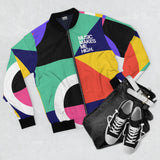 Elevate your style effortlessly with the Music Makes Me High Bomber Jacket. This men’s all-over print jacket combines fashion and functionality, featuring a ribbed stand-up collar, elastic cuffs, and an elasticized hem for a comfortable fit.