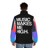 The Music Makes Me High men's puffer jacket is a grade-A upgrade for any wardrobe. Featuring a stand-up collar and quilted lining, this jacket combines style with functionality, offering two spacious side pockets for added practicality. Lightweight and super soft to the touch, it ensures comfort while keeping you warm. Made with a 100% polyester outer layer and a 100% black polyester cotton-like quilted lining, this regular fit jacket is perfect for layering.