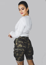 - Fabric Information: Sweatshirt 100% Polyester | Shorts 97% Cotton 3% Spandex