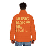 The Music Makes Me High men's puffer jacket is a grade-A upgrade for any wardrobe. Featuring a stand-up collar and quilted lining, this jacket combines style with functionality, offering two spacious side pockets for added practicality. Lightweight and super soft to the touch, it ensures comfort while keeping you warm. Made with a 100% polyester outer layer and a 100% black polyester cotton-like quilted lining, this regular fit jacket is perfect for layering.