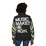 MMMH Women’s Puffer Jacket: Black Abstract/Black | White