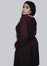 - Description: Take a sip of this merlot dress perfect for work or a evening out. The elastic drop waist snatched you in for a hourglass effect.