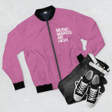 Crafted from 100% polyester, this jacket is perfect for showcasing your unique personality and style. Whether you're heading out with friends or enjoying a casual day, the Music Makes Me High Bomber Jacket is your go-to choice for making a statement!