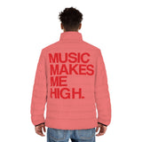The Music Makes Me High men's puffer jacket is a grade-A upgrade for any wardrobe. Featuring a stand-up collar and quilted lining, this jacket combines style with functionality, offering two spacious side pockets for added practicality. Lightweight and super soft to the touch, it ensures comfort while keeping you warm. Made with a 100% polyester outer layer and a 100% black polyester cotton-like quilted lining, this regular fit jacket is perfect for layering.