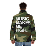 The Music Makes Me High men's puffer jacket is a grade-A upgrade for any wardrobe. Featuring a stand-up collar and quilted lining, this jacket combines style with functionality, offering two spacious side pockets for added practicality. Lightweight and super soft to the touch, it ensures comfort while keeping you warm. Made with a 100% polyester outer layer and a 100% black polyester cotton-like quilted lining, this regular fit jacket is perfect for layering.