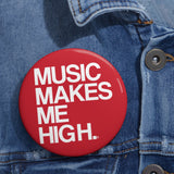 Start your journey in selling customized pin buttons with Printify and make a bold statement with the "Music Makes Me High" Round Pin. Perfect for music lovers and collectors alike, this pin is a must-have for anyone looking to express their passion for music in a fun and fashionable way!