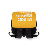 Elevate your everyday adventures with the Music Makes Me High Casual Backpack, a perfect blend of style and functionality. Crafted from durable 24.34 oz. Oxford canvas, this classic-shaped backpack features a chic front flap design secured with strap claps, ensuring your essentials stay safe and sound.
