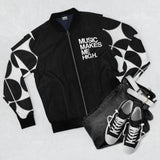 Crafted from 100% polyester, this jacket is perfect for showcasing your unique personality and style. Whether you're heading out with friends or enjoying a casual day, the Music Makes Me High Bomber Jacket is your go-to choice for making a statement!