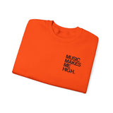 The ribbed cuffs and waistband provide a snug fit, perfect for layering or wearing alone. This sweatshirt is a versatile staple for any music lover's closet, ideal for casual outings, cozy nights in, or simply chilling with friends. Make a statement and let your love for music shine through with the "Music Makes Me High" Sweatshirt!