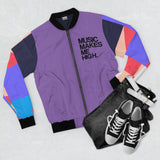 Crafted from 100% polyester, this jacket is perfect for showcasing your unique personality and style. Whether you're heading out with friends or enjoying a casual day, the Music Makes Me High Bomber Jacket is your go-to choice for making a statement!