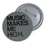 Start your journey in selling customized pin buttons with Printify and make a bold statement with the "Music Makes Me High" Round Pin. Perfect for music lovers and collectors alike, this pin is a must-have for anyone looking to express their passion for music in a fun and fashionable way!