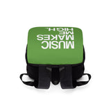 Elevate your everyday adventures with the Music Makes Me High Casual Backpack, a perfect blend of style and functionality. Crafted from durable 24.34 oz. Oxford canvas, this classic-shaped backpack features a chic front flap design secured with strap claps, ensuring your essentials stay safe and sound.
