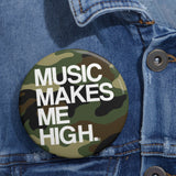 Start your journey in selling customized pin buttons with Printify and make a bold statement with the "Music Makes Me High" Round Pin. Perfect for music lovers and collectors alike, this pin is a must-have for anyone looking to express their passion for music in a fun and fashionable way!
